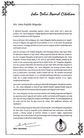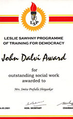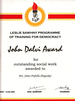 An all-round and versatile President, she has given a new direction to Ugar Mahila Mandal. She has a passion for social work. As a result, she was crowned by the “John Dalvi Award” by Leslie Sawhney Foundation of Tata Trust Mumbai in the year 2001.