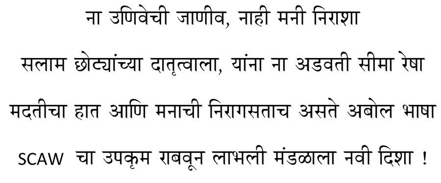 SCAW (Sleeping Children Around the World). A project of the Canadian Govt. to help children below poverty line by providing them with essential things like sleeping kit, educational kit, medicines etc. The aid for each child is worth almost R.5000-6000.